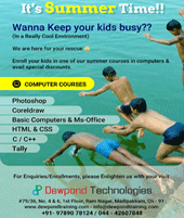 Beat the Heat!! Bring Out the Wizkid in your Kid this summer. Courses offered Photoshop, Web Designing, C, C++, Tally, Basic Computers...
